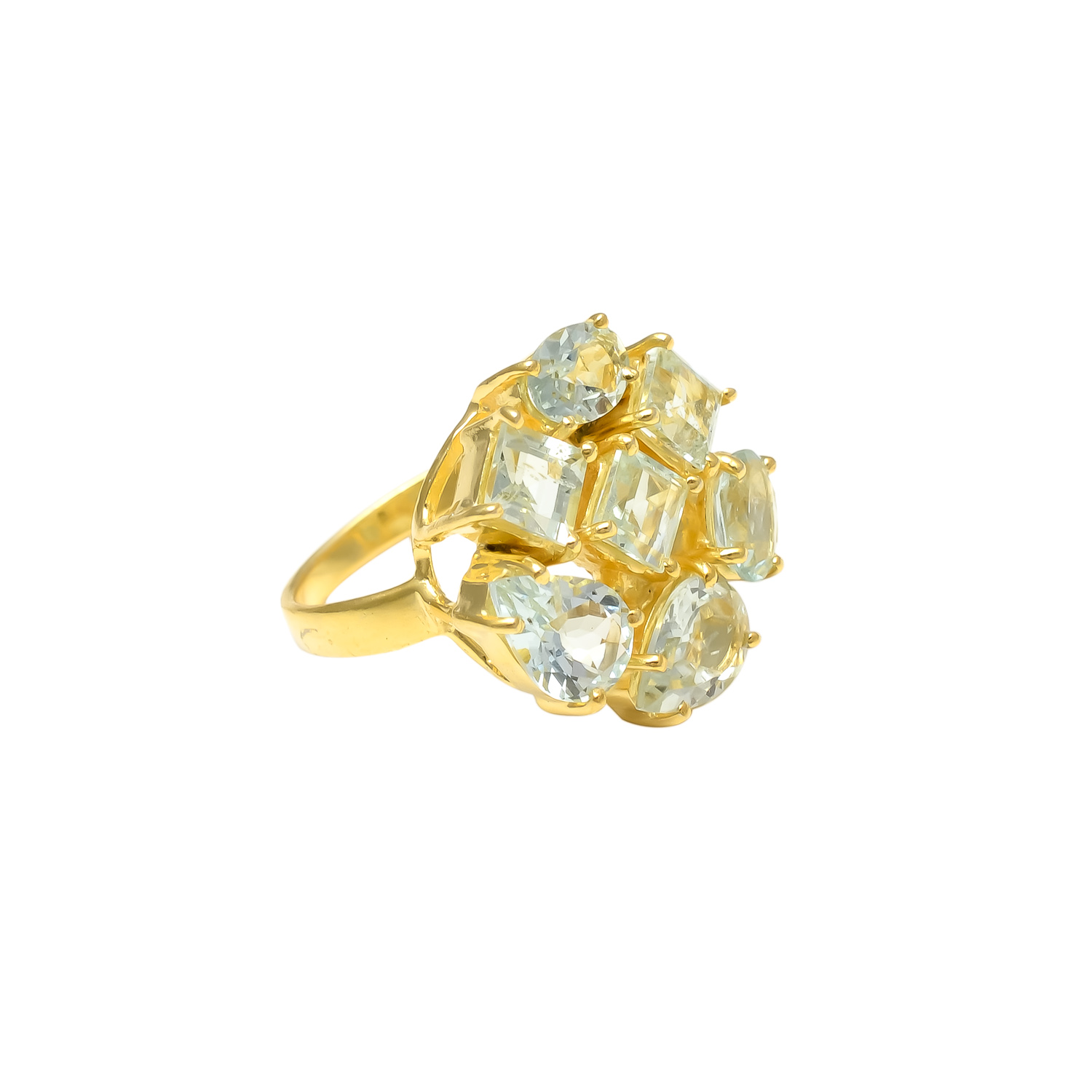 Make a statement with this stunning aquamarine ring, showcasing a beautiful blend of pear, oval, and square-cut stones. Set in polished gold, it radiates elegance and contemporary charm